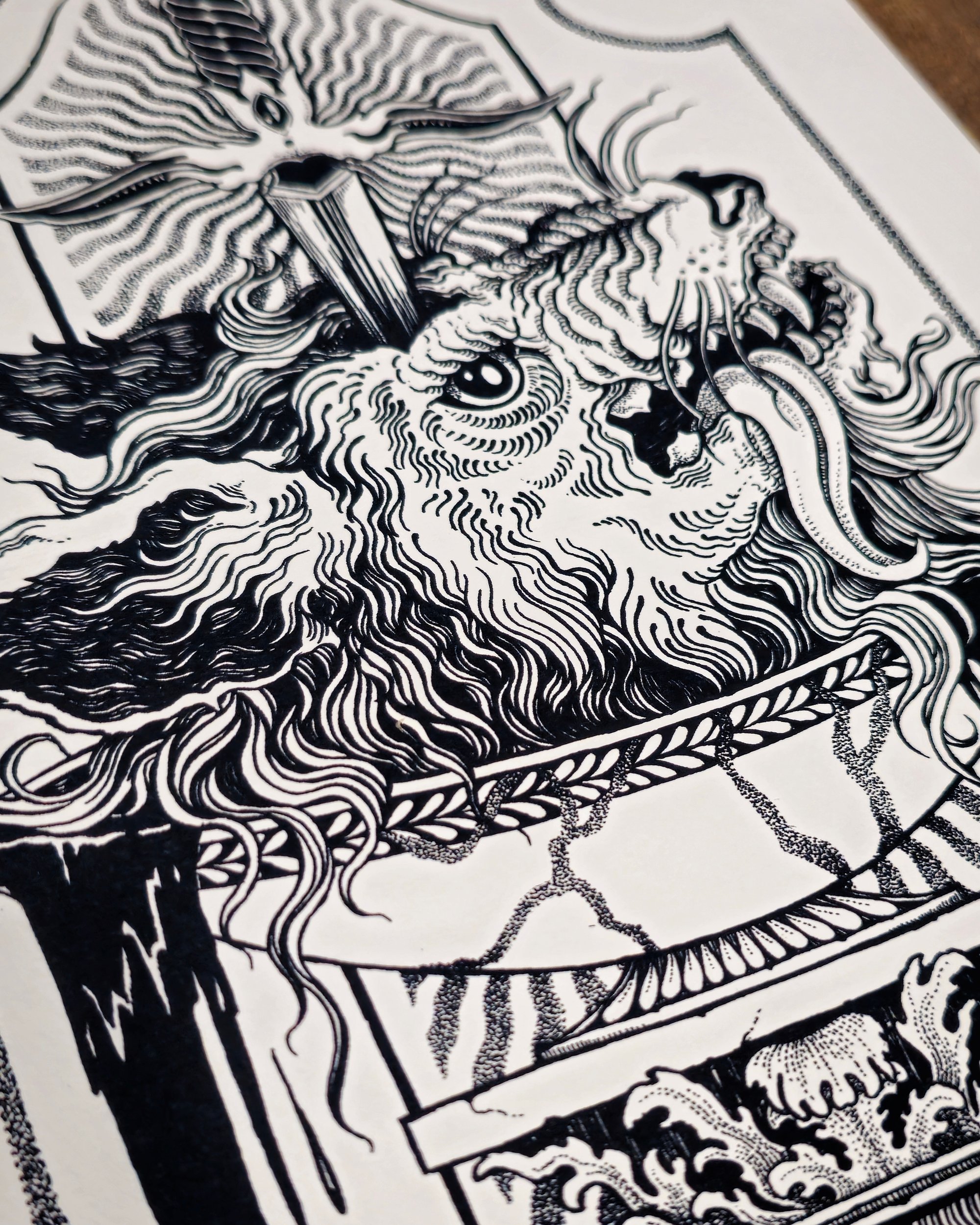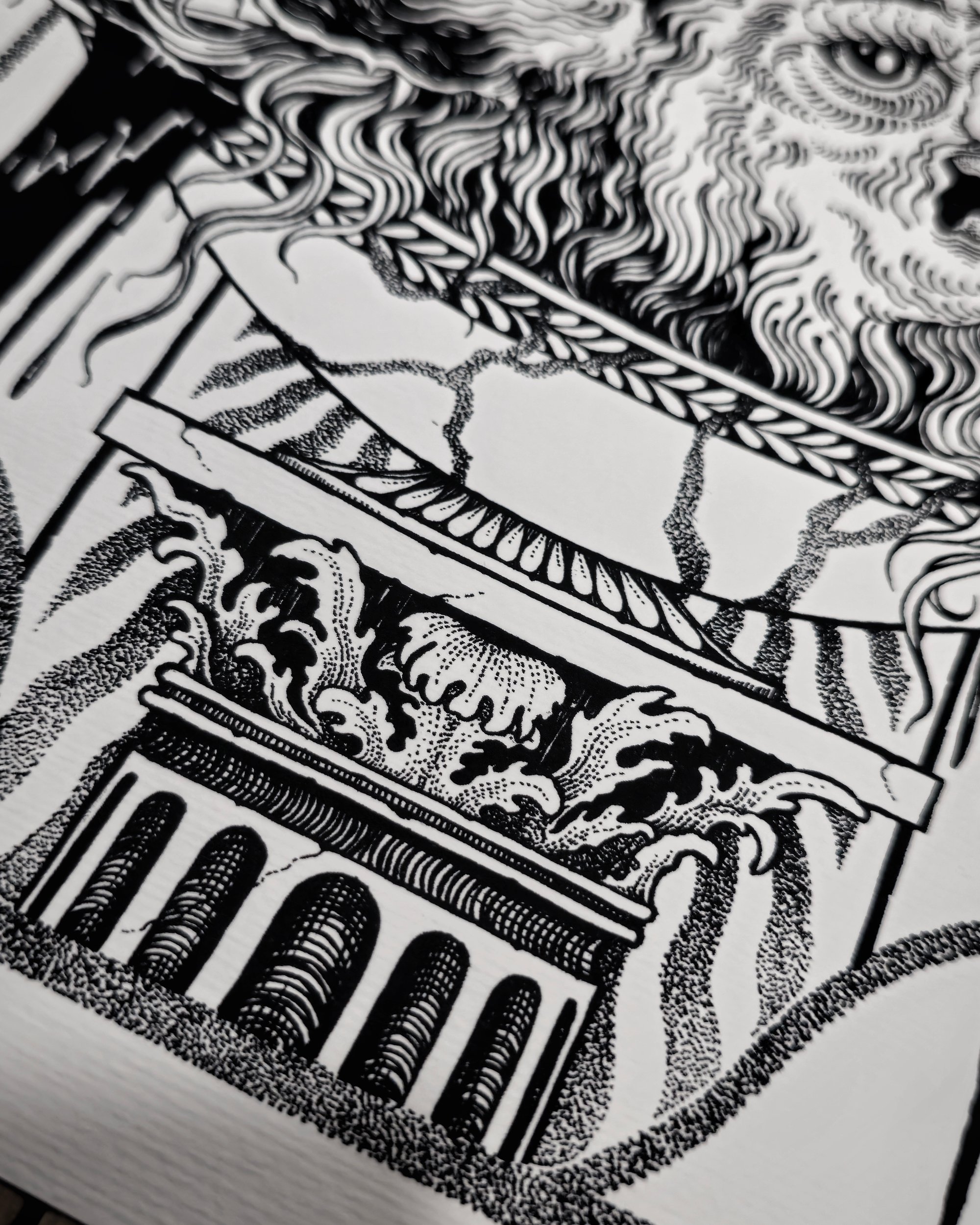 Printed on Hahnemühle textured FineArt archival paper (210 gsm).